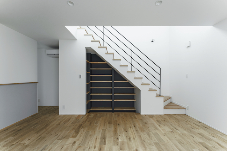 階段下に設けた本棚スペースは、家族の憩いのスペースです。