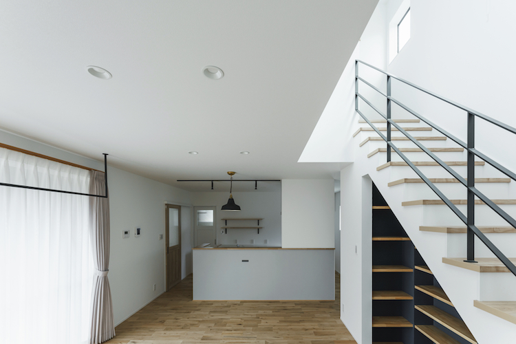 ちょっとした吹抜けとアイアン手摺が実現した空間です。