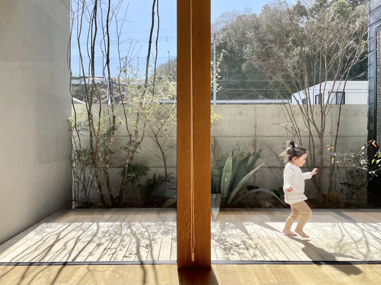 中と外の境界線を曖昧にした繋がりを感じられる空間。