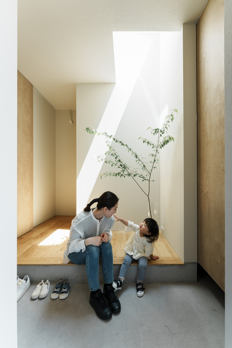 光が降り注ぐ印象的な玄関。