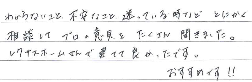 舞鶴市 N様 オシャレで素敵な住まいの提案には感動しました。 Q 家づくりでどういうことを重視されましたか? A Q レクサスホームで建てようと思った決め手を教えてください。 A Q 家づくりを進めていく中で、思い出に残ったことは何ですか? A Q 実際にお住まいになられていかがですか? A Q レクサスホームで家を建てて良かったと思うことは何ですか? A Q これから家づくりを始められるかたに一言アドバイスをお願いいたします。 A