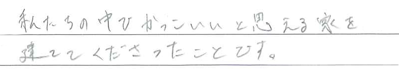 福知山市 S様 家事がとても楽になり、ストレスのない生活が嬉しいです。 Q 家づくりでどういうことを重視されましたか? A Q レクサスホームで建てようと思った決め手を教えてください。 A Q 家づくりを進めていく中で、思い出に残ったことは何ですか? A Q 実際にお住まいになられていかがですか? A Q レクサスホームで家を建てて良かったと思うことは何ですか? A Q ここをもっとこうしておけば・・・と思われることはありますか? A Q これから家づくりを始められるかたに一言アドバイスをお願いいたします。 A